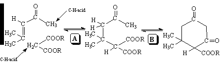 Als Michael-Reaktion (A) bezeichnet man die Addition von C-H-aciden Verbindungen an vinyloge