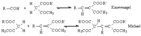 (B) oder Claisen-Kondensationen anschließen. Andrerseits kann sich an eine Knoevenagel-Reaktion eine Michael-Reaktion anschließen: