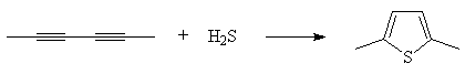 Thiophen wird in technischem Maßstab aus Butan und Schwefel in der Dampfphase hergestellt. C4H10 + 4 S -> Thiophen + 3 H2S 2,5-Dialkyl-Derivate entstehen durch Addition von Schwefelwasserstoff an 1,3-Diinein alkalischem Medium:
