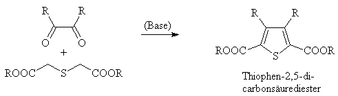 Bei der Thiophensynthese nach Hirnsberg sind 1,2-Diketone und 3-Thiaglutarsäurediester die Ausgangsprodukte.